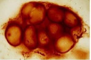 850 Mio. Jahre) : eine coloniale chroococcalean Form, wahrscheinlich Myxococcoides
